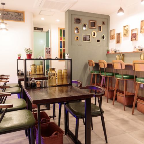 ≪インスタ映えの可愛い空間♪≫2名掛けテーブル席×6、カウンター×6◆明るくお洒落な店内は、楽しいひとときを演出します◎ SNS映えするスポットがたくさんあり、思わず写真を撮りたくなること間違いなし♪ こだわりの内装ポイントがたくさんあり、是非そちらもご堪能ください!当店で素敵な時間をお過ごしください★